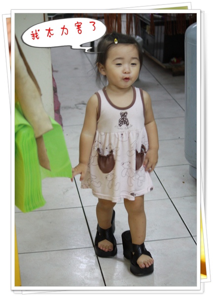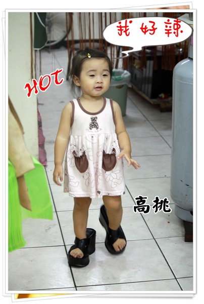 現在她居然可以穿著姨婆的高高鞋小小跑步
